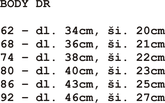 Detský textil: body od 56 po 92 a nátelník od 98 po 146
