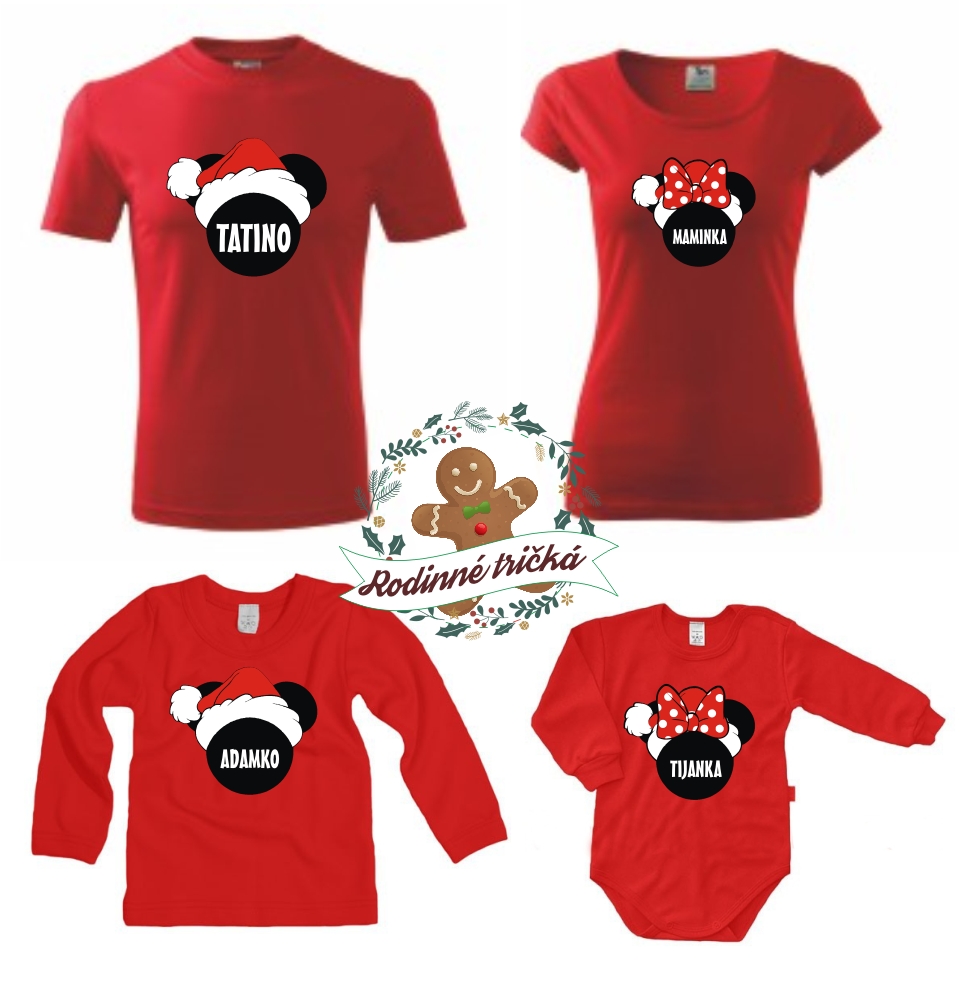 Červená sada pre vianočnú rodinu s čiernymi uškami