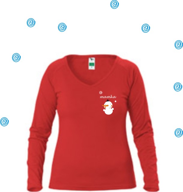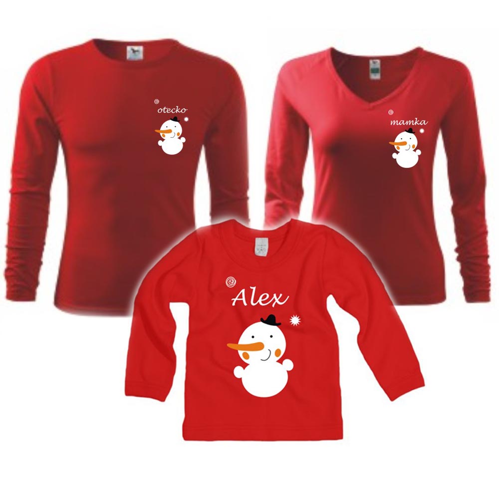 Červená sada na Vianoce so snehuliačikom. Veľkosti a meno na detské tričko stačí vpísať do poznámky po zadaní tovaru do košíka.
