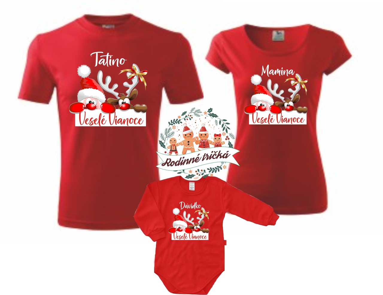 Červená sada pre vianočnú rodinu s Santom a jeho naj pomocníkom sobíkom.