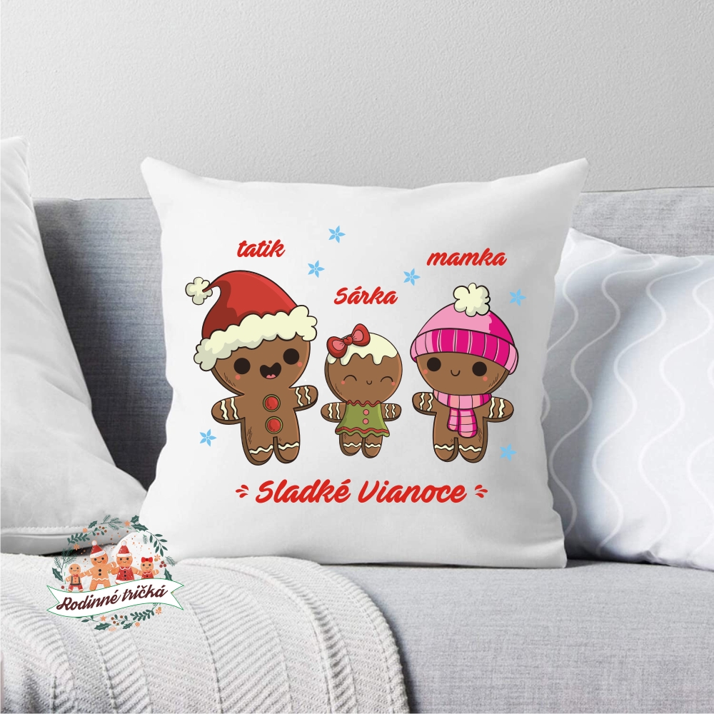 Oživte si Vianoce rodinným vankúšikom. Tieto perníčky boli hitom minulých Vianoc na tričkách, tak nech sa páči, už aj vankúšik si k tričkám môžete dokúpiť.